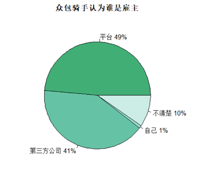 在我们的调查中,平台经济的多数劳动者对自己用工关系认识模糊。这种模糊的认识主要是基于平台与劳动者之间复杂的劳动关系。外卖骑手有专送骑手和众包骑手之分。一般认为专送骑手是存在劳动关系的骑手,众包骑手是以独立的第三方和平台合作的骑手。但是,在我们的调研中,发现骑手和平台之间的关系非常复杂。专送骑手很多并不和平台直接建立劳动关系,而是和平台公司的某个业务承包商建立劳动关系。所以63%的专送骑手认为自己的雇主是第三方公司。此外,业务承包商与专送骑手之间还可能存在劳务派遣关系、劳务外包关系等。我们调研中遇到的一些外卖员,合同一年换一次,每次都是不同的公司。一些从平台那里承接业务的承包商还会把业务细分承包出去,形成层层分包的业务关系。劳动者尽管在平台公司上注册,并受到平台公司的管理,但是很难找到自己的雇主到底是谁。快递行业也较为常见,一些快递公司将快递终端配送的业务全部切割出去,交给加盟商。加盟商或者直接招募快递员,或者另找承包商,将手下的业务再次分包。错综复杂的用工结构和用工关系使得劳动者在发生争议的时候不知道自己的相对方到底是谁。